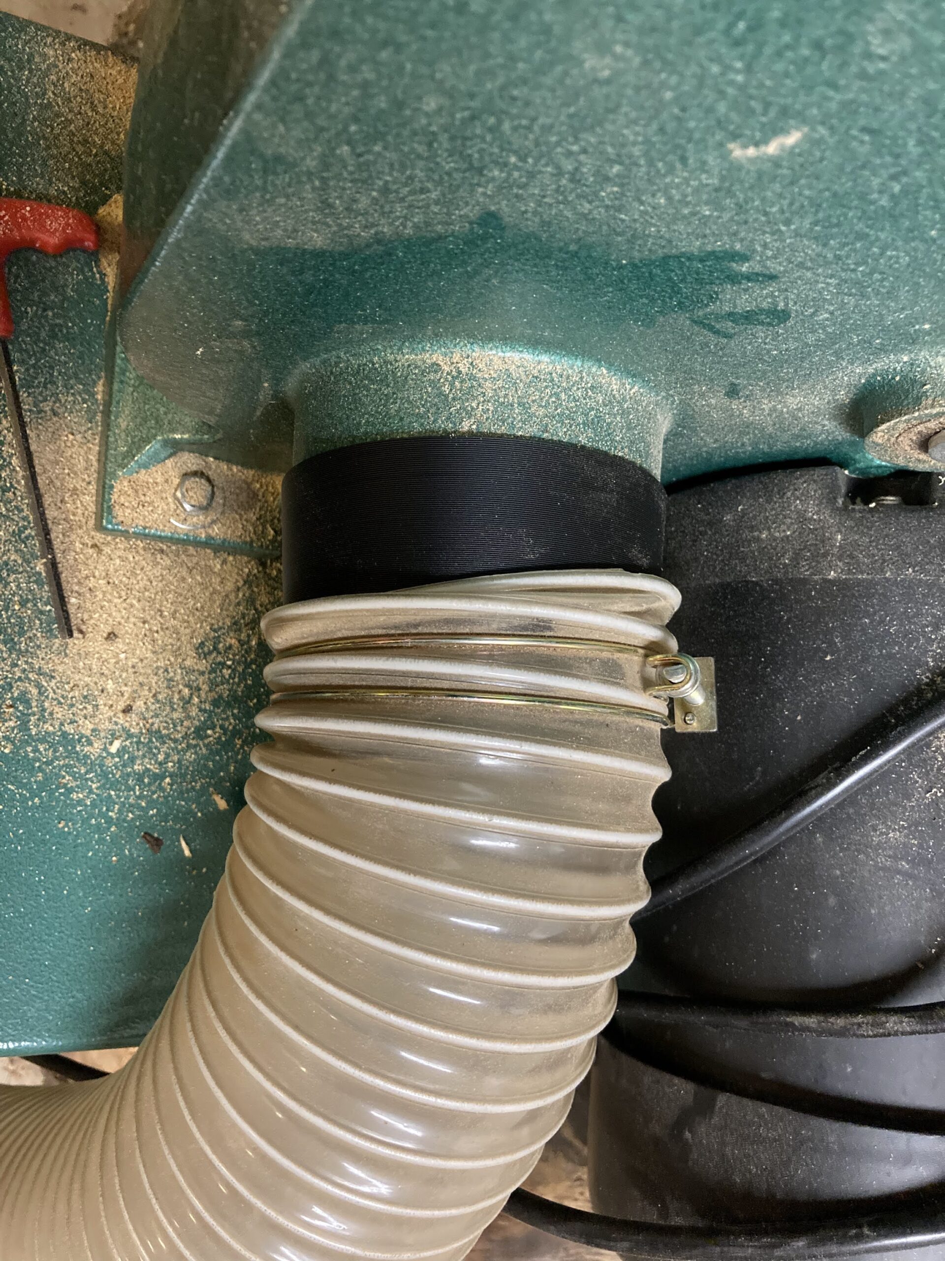 Quick-connect adapter for 4-inch dust collection systems that allows rapid tool switching without disconnecting hoses. Designed for easy connection to 4-inch dust ports on power tools.