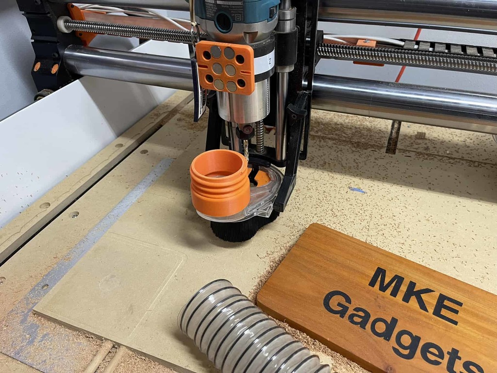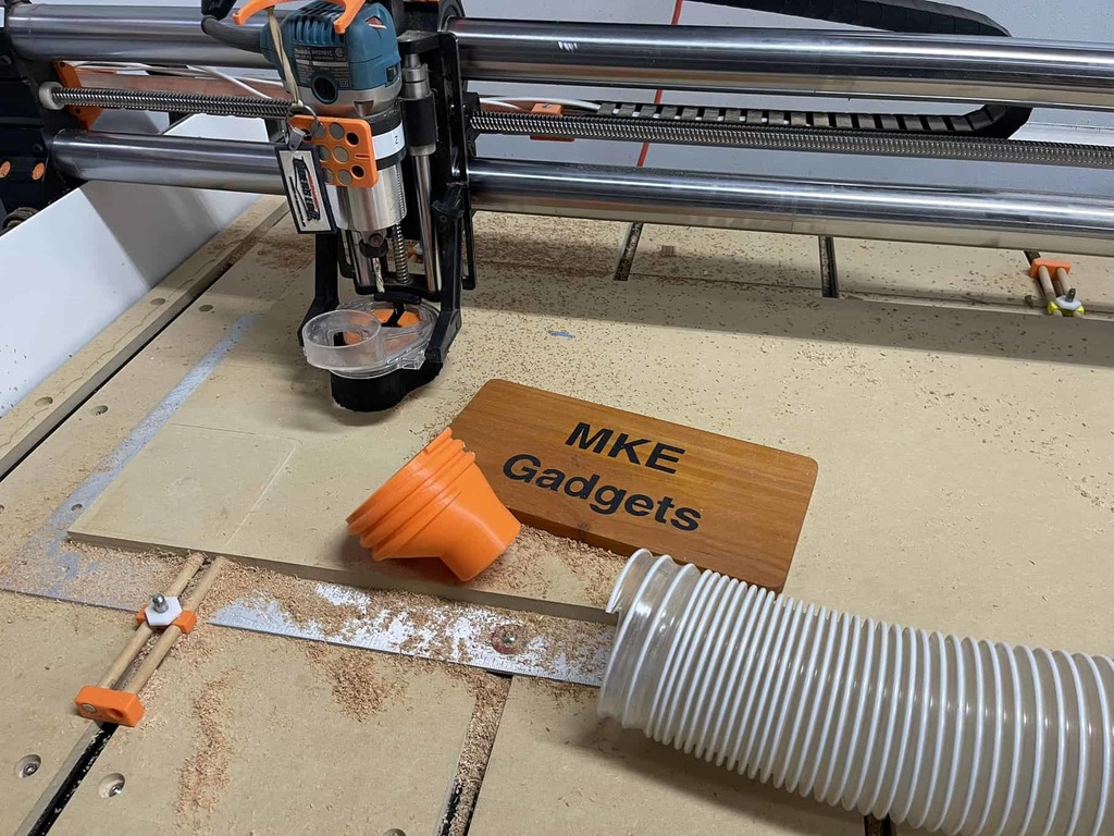 This dust boot adapter is designed to create a secure connection between your CNC router’s dust extraction system and your workshop vacuum or dust collection hose. Say goodbye to frustrating attempts with magnets, rubber bands, or unreliable hose clamps that often misalign. This reliable adapter ensures a tight, leak-proof fit that keeps your workspace clean and your CNC router running efficiently. The durable construction provides long-lasting performance in demanding workshop environments. Whether you’re working with 2 1/2 inch or 4 inch hoses, this adapter offers a simple solution for effective dust management. Designed for ease of use, it eliminates the guesswork and hassle associated with traditional dust collection methods. Keep your work area clean and your machinery protected with this essential accessory that helps maintain optimal airflow for your CNC router operation.