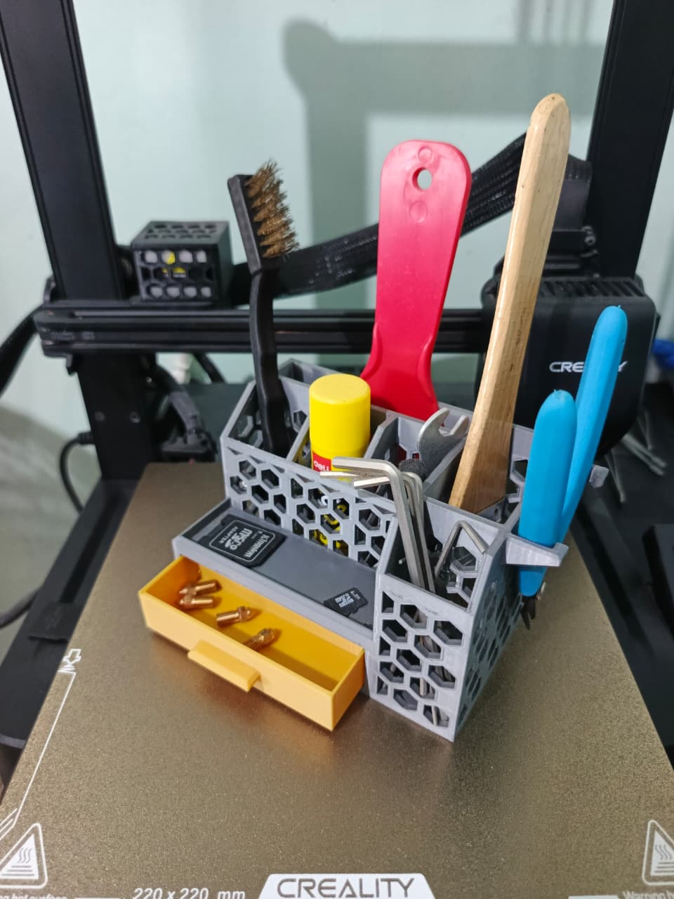 Keep your hex tools organized and within reach with this practical drawer-style organizer designed for efficient workshop storage. The compact unit features multiple compartments that securely hold various hex wrench sizes, making it easy to find exactly what you need without searching through cluttered toolboxes. Its sturdy construction ensures durability even with daily use, while the drawer design allows for smooth opening and closing. Whether you’re working on bike repairs, furniture assembly, or general maintenance tasks, this organizer helps maintain a clean, professional workspace. The universal compatibility means it works seamlessly with standard tool storage systems, allowing you to integrate it into your existing setup effortlessly. Designed with functionality in mind, this organizer prevents tools from getting lost or damaged while keeping everything neatly arranged. Perfect for both home workshops and professional environments where organization matters.