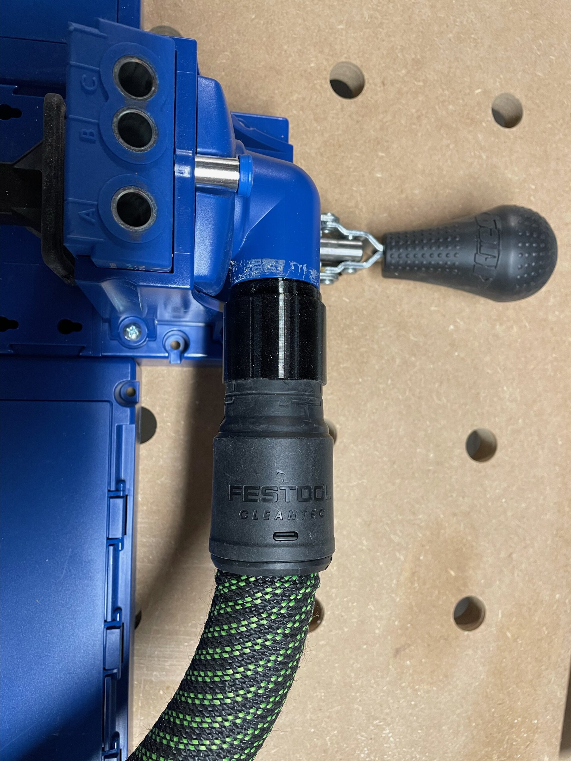 This essential adapter connects your Kreg K5 Pocket Hole Jig to Festool dust collection systems with a 27mm hose connection. Designed for professional carpenters and DIY enthusiasts who demand clean, efficient workshop environments, this adapter ensures seamless integration between your pocket hole jig and dust extraction. By capturing sawdust and debris at the source, it keeps your workspace clean and reduces respiratory irritation during woodworking projects. The robust construction guarantees reliable performance with repeated use, while its precise fit minimizes air leaks that could compromise dust collection efficiency. Whether you’re building cabinetry, furniture, or custom woodwork, this adapter enhances your workflow by maintaining optimal shop conditions. Its universal compatibility means it works with newer Kreg models as well, making it a versatile addition to any serious woodworker’s toolkit. The straightforward design eliminates complex setup procedures, allowing you to focus on creating quality joinery rather than managing cleanup. Perfect for both home workshops and professional shops, this adapter helps maintain the precision and cleanliness essential for superior woodworking results.