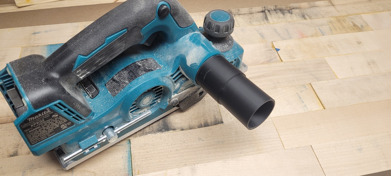 Connects your Makita XPK02 planer’s dust port to standard shop vacuum hoses for efficient debris collection. Features 1.5-inch diameter for easy attachment.