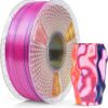 The SUNLU Silk Triple Color PLA Filament features a shiny silk texture with vibrant orange, blue, and green hues, adding a unique finish to your 3D prints. With 1.75mm diameter and precise dimensional accuracy of +/- 0.02mm, this 1KG spool ensures consistent, high-quality results.